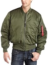 Discounts Alpha Industries Men's Ma-1 Flight Jacket The Authentic Alpha MA-1 Flight Jacket, often copied but never duplicated, the classic flight jacket made by Alpha for the military for over 40 years features nylon flight satin outer shell with reflective nylon lining, polyester batting interlining, front closure storm flap, knitted collar, cuffs, and