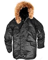 Review for Alpha Industries Men's N-3B Parka Sizes: XS - 5XL Hood lined with synthetic mouton and trimmed with removable synthetic coyote fur, water repellent nylon flight satin outer shell, polyester batting interlining, elbow reinforced patches, inset knit cuffs, adjustable hood with take-up strap